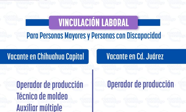 Anuncian vacantes para adultos mayores o personas con discapacidad en las ciudades de Chihuahua y Juárez.
