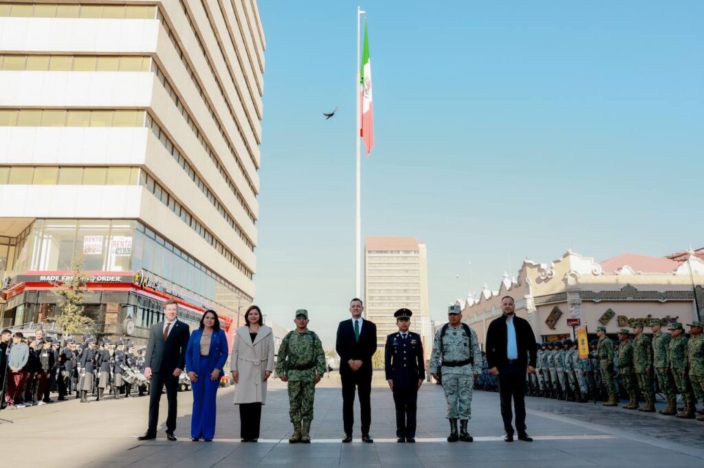 El alcalde Marco Bonilla junto a autoridades federales y estatales, izaron la bandera de México en Plaza de Armas, en conmemoración del 108 aniversario de la Constitución Política Mexicana, ya que fue en 1917 cuando se promulgó esta última versión.
