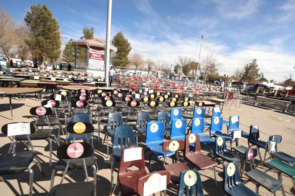 Como parte de su gira de en varios municipios del estado, el Presidente Municipal, Cruz Pérez Cuellar en coordinación con la Asociación Más por Chihuahua, donó mobiliario escolar a Ahumada.