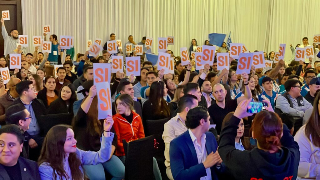 En su intervención, Mauro Casas destacó los principales logros de su gestión y agradeció a todos los jóvenes que han sido parte activa de este proceso, reconociendo el compromiso y la unidad que caracteriza a Acción Juvenil Chihuahua.