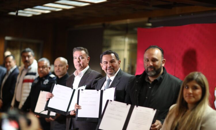 En la firma de convenio estuvieron el secretario del Ayuntamiento, Héctor Rafael Ortiz Orpinel; el secretario de Seguridad Pública Municipal, César Omar Muñoz; el coordinador general de Seguridad Vial, César Tapia y el coordinador general de Protección Civil, Sergio Rodríguez.