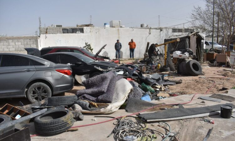 Ciudad Juárez.- El Gobierno Municipal continúa trabajando en los operativos de reordenamiento urbano, este jueves personal operativo de la Dirección de Limpia en colaboración con inspectores de diferentes dependencias, realizaron el retiro de un taller mecánico que operaba de manera irregular en el fraccionamiento Hacienda de las Torres Universidad, el cual se encontraba instalado en un parque, invadiendo la vía pública y causando un impacto ambiental.