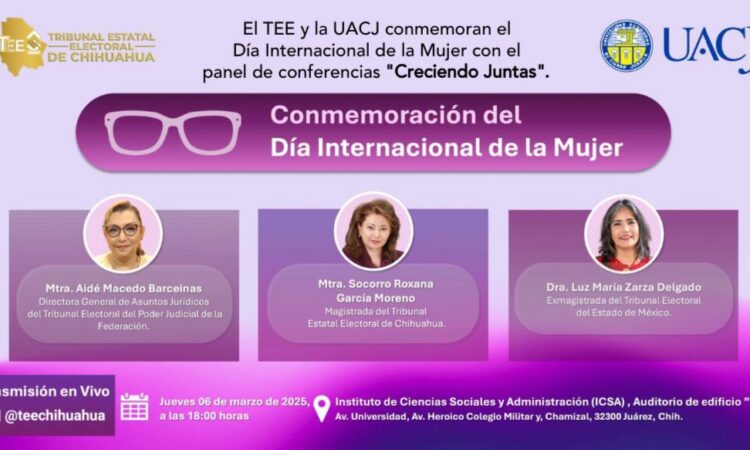 Ciudad Juárez.- El próximo jueves 06 de marzo, el Tribunal Estatal Electoral y la Universidad Autónoma de Ciudad Juárez llevarán a cabo el panel de conferencias “Creciendo Juntas”.