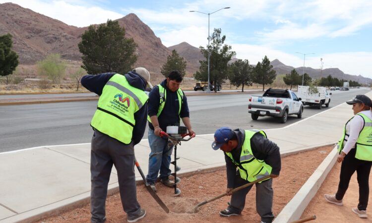 8.- De ser necesario colocar un tutor (palo de guía para el árbol). Plantar un árbol es muy valioso, ya que ayuda a reducir la temperatura del suelo, además son antiestrés, atraen más lluvia, produce más oxígeno, funcionan como filtros de agua naturales; por mencionar alguno de los beneficios. La Dirección de Mantenimiento Urbano, hace un llamado a la ciudadanía a cuidar los árboles y plantas de Chihuahua Capital.