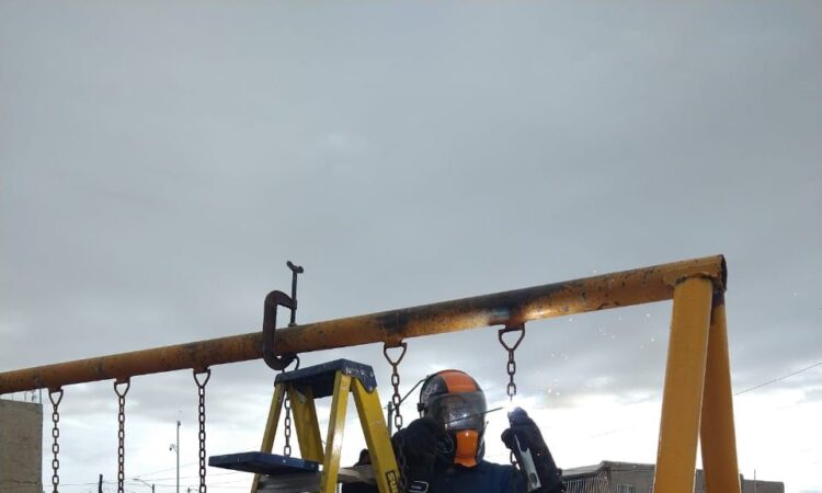 Ciudad Juárez.- Personal de la Dirección de Parques y Jardines trabajó en la limpieza, mantenimiento y reparación del área de juegos de un parque ubicado en el cruce de las calles Boro y José María Morelos en la colonia Durango.