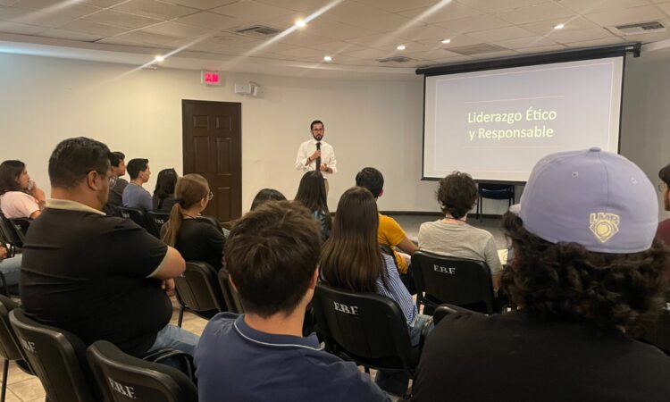 La ponencia estuvo a cargo por el director de la Facultad de Ciencias Políticas y Sociales de la Universidad Autónoma de Chihuahua (UACH), Mario Duarte Bustillos, quien resaltó la importancia de formar líderes que impacten en la comunidad.