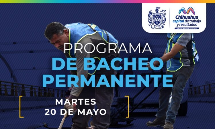 Para mantener las calles de la capital en óptimas condiciones, el Gobierno Municipal a través de la Dirección de Obras Públicas, realizará trabajos de bacheo este 20 de mayo en las colonias Lomas del Santuario, Campesina, 11 de Febrero y fraccionamiento Los Arroyos.