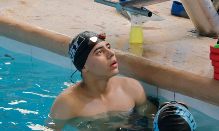 Eduardo Corral Gómez, usuario del centro deportivo municipal “Niño Espino”, se prepara para su competencia en la Olimpiada Nacional CONADE a celebrarse los primeros días de junio en donde participará dentro de la categoría 13-14 años en de seis pruebas de natación.