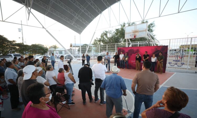 El Presidente Municipal, Cruz Pérez Cuéllar, encabezó la entrega del domo a los usuarios del parque El Gusanito, situado en el fraccionamiento Riberas del Bravo.
