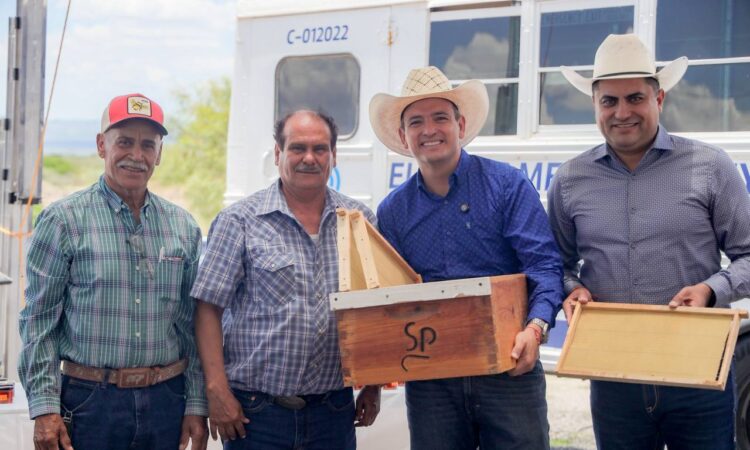 Durante la visita al seccional de Colonia Soto, el alcalde Marco Bonilla, realizó la entrega de 32 paquetes de núcleos de abeja reina y bastidores a productores apícolas de la zona rural de Chihuahua, mismos que se utilizan para establecer nuevas colmenas y/o para reforzar las existentes, y son una herramienta esencial para la multiplicación de colonias y la producción de miel.