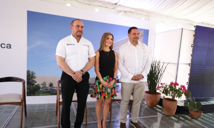 Previo a la colocación de la primera piedra, se realizó una plática entre la fundadora de la torre médica, Michele Betancour; Cintia Villarreal, especialista en oncología y asesora ejecutiva del proyecto; y Humberto Mendoza, encargado de la construcción del edificio.