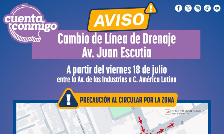 La Junta Municipal de Agua y Saneamiento (JMAS) de Chihuahua informó que este viernes 18 de julio, iniciará los trabajos de cambio de un tramo de línea de drenaje dañada en el cruce de las avenidas Juan Escutia y De las Industrias.