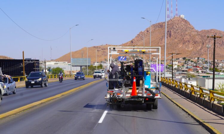 Se instalaron mil 245 metros de pintura en pases peatonales en zonas escolares de las colonias Madera 65, Praderas del Sur, Martín López, Ignacio Allende, 20 Aniversario, Cerro Coronel, y Brisas del Real I y II, además se colocaron reductores de velocidad de caucho y señalamiento de alto horizontal en la avenida California y la calle Arizona.