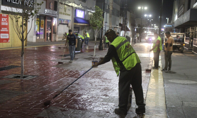 Con el objetivo de mantener una buena imagen urbana, el Gobierno Municipal, a través de la Dirección de Servicios Públicos Municipales, trabaja en el retoque de pintura en el adoquinado de la parte peatonal en la calle Libertad.