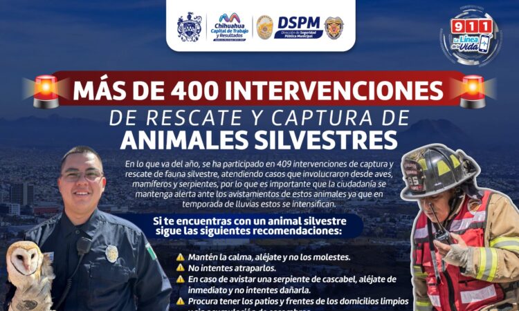 El Heroico Cuerpo de Bomberos, en lo que va del año, ha participado en 409 intervenciones de captura y rescate de fauna silvestre, donde se involucraron aves, mamíferos y serpientes, por lo que exhortan a estar alerta ante los avistamientos de estos animales ya que en temporada de lluvias se intensifican avistamientos.
