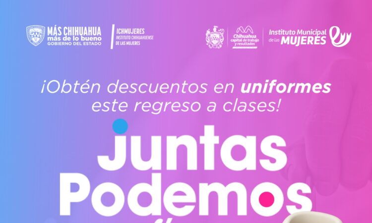 El Gobierno Municipal de Chihuahua, a través del Instituto Municipal de las Mujeres (IMM), invita a todas las mujeres mayores de 18 años a tramitar la tarjeta “Juntas Podemos Ahorrar”, con la cual podrán obtener descuentos exclusivos en uniformes y calzado escolar para este regreso a clases.