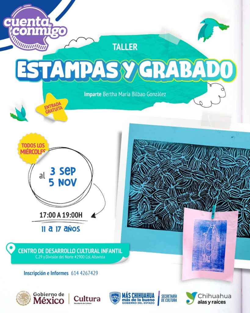 Para preadolescentes y adolescentes de 11 a 17 años, todos los miércoles desde el 3 de septiembre, se contará con atención en el taller de Estampas y Grabado, donde podrán dar vida a sus ideas y emociones a través de la imagen, en un horario de 17:00 a 19:00 horas.
