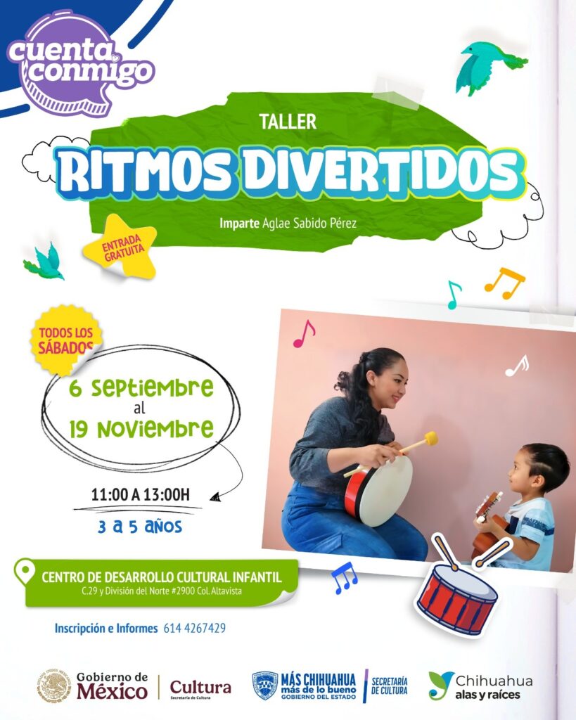 También se ofertará el curso de Ritmos Divertidos, que recibirá a infantes de 3 a 5 años todos los sábados a partir del 6 de septiembre de 11 de la mañana a 1 de la tarde, en el mismo, las y los niños, acompañados de su padres o tutores, disfrutarán del movimiento y los sonidos en un ambiente lleno de juego y conexión.