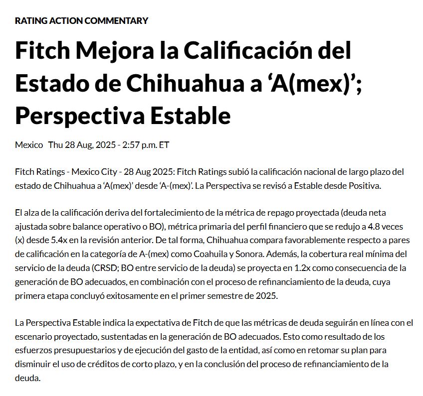 Genera Estado ahorro por más de 330 millones de pesos con mejora de calificación de Fitch Ratings.