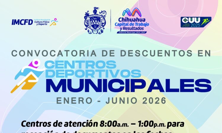 La convocatoria se podrá consultar en redes sociales del IMCFD o en la página web del municipio de Chihuahua: https://www.municipiochihuahua.gob.mx/CCS/Convocatorias/CONVOCATORIA_DESCUENTOS_CENTROS_DEPORTIVOS_MUNICIPALES_ENERO_JUNIO_2026.