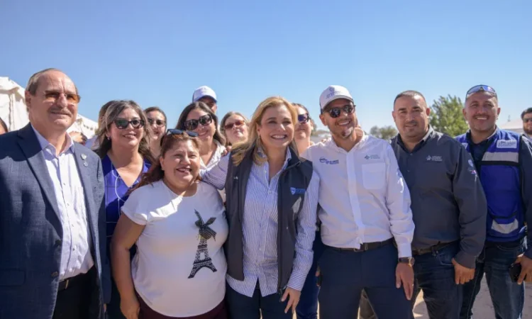 La gobernadora Maru Campos supervisó en Ciudad Juárez los avances de la primera de tres etapas, de la introducción de la Red de Agua Potable en el ejido El Sauzal, que una vez concluida en su totalidad, beneficiará a más de 1,700 familias.
