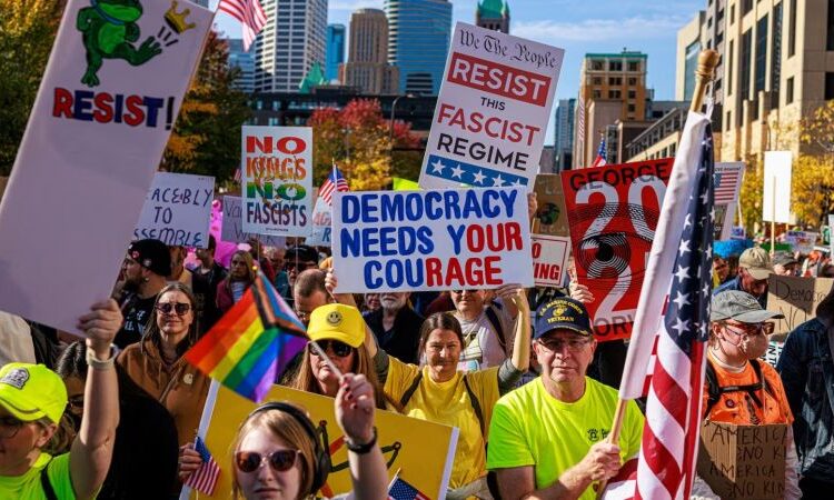 Casi 7 millones de personas asistieron a las manifestaciones del sábado, incluidos más de 100.000 en Nueva York, según organizadores y autoridades. Además de los grandes eventos en las principales ciudades, pequeños grupos de manifestantes “No Kings” surgieron a lo largo de avenidas concurridas, en plazas de pueblos pequeños y en parques municipales tanto en estados rojos como azules..