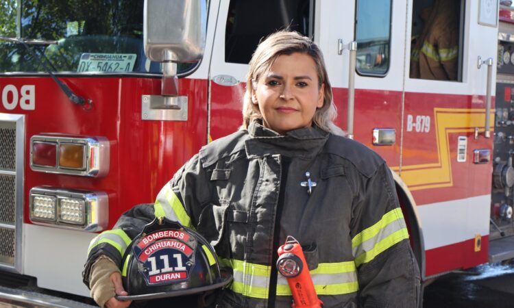 Sandra Durán , cuenta con 14 años de antigüedad en el H. Cuerpo de Bomberos de Chihuahua y actualmente tiene el grado de bombero segundo, se define como una guerrera, una luchadora que sobrevivió al cáncer de mama y la transformó en una persona fuerte, más cuando recuerda la frase que le han repetido: “si pudiste con eso puedes con todo.”
