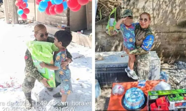 El día del festejo, los infantes de Marina llegaron con su uniforme camuflajeado, pararon por un momento la ayuda, pese al fango y la humedad, llevando entre sus manos un pastel blanco con adornos azules. No había salón, ni globos, ni regalos costosos: el pequeño no estaba, los navales decidieron esperarlo para darle la sorpresa.