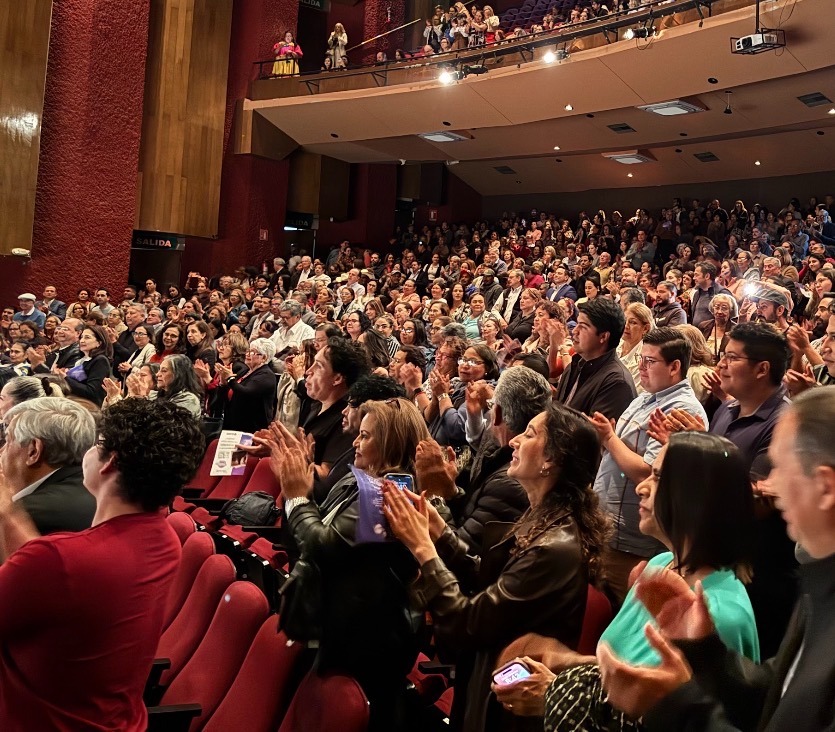 Cerca de 1,400 chihuahuenses abarrotaron el Teatro de los Héroes para disfrutar de la obra “La mujer que cayó del cielo”, función que tuvo como propósito recaudar fondos para la reconstrucción del templo del Sagrado Corazón de Jesús, de la comunidad de Panalachi, en Bocoyna.