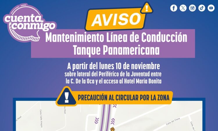 La Junta Municipal de Agua y Saneamiento (JMAS) de Chihuahua iniciará este lunes 10 de noviembre, los trabajos de reubicación de la línea de conducción del tanque Panamericana.