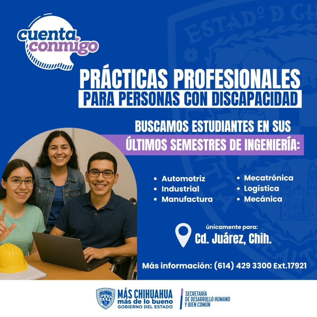 En Ciudad Juárez se ofrece la oportunidad de realizar prácticas profesionales a jóvenes que cursen los últimos semestres de las carreras de Ingeniería Automotriz, Industrial, en Manufactura, Mecatrónica, Logística o Mecánica.