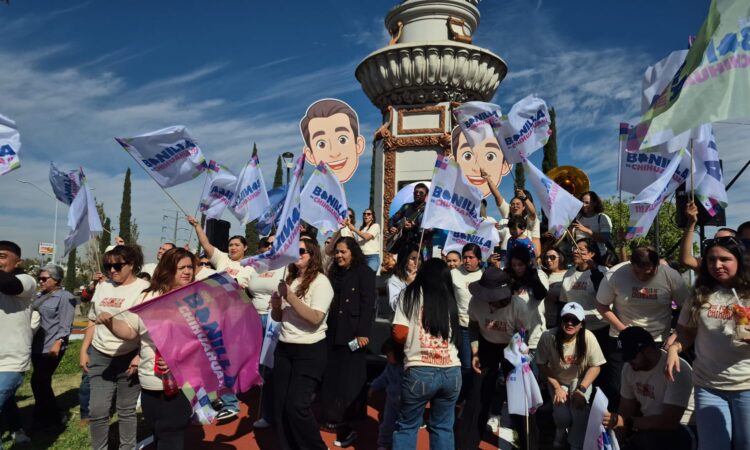 Este sábado por la mañana, cientos de personas se concentraron en la Huerta Legarreta para participar en una caravana que avanzó hasta la glorieta de la Diana Cazadora, donde colocaron calcas, banderas y pancartas con el mensaje: “Que Bonilla es Chihuahua”, en respaldo al alcalde de la capital.