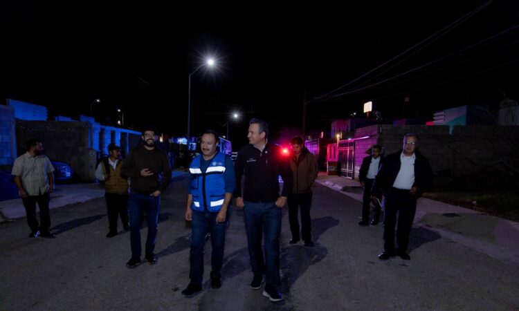 El alcalde de Chihuahua, Marco Bonilla, supervisó la reconversión de alumbrado público antiguo a luz LED, en la colonia Punta Naranjos, lo cual ha dotado a las familias del sector de una iluminación blanca más potente, que consume menos energía, brinda más seguridad y modernidad a la zona.