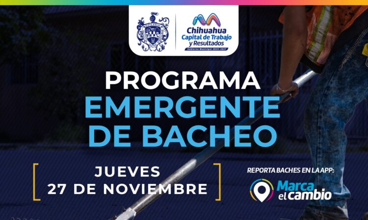 El Gobierno Municipal, a través de la Dirección de Obras Públicas, realizará trabajos de bacheo este jueves 27 de noviembre, mediante el programa emergente en calles de las colonias: Atenas y San Felipe, así como en la avenida Universidad y en el Ejido Ciénega de Ortiz.