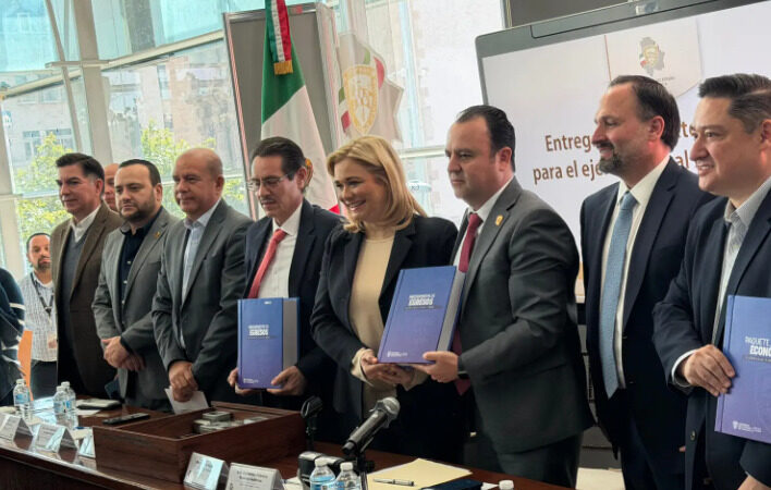 La gobernadora de Chihuahua, María Eugenia Campos Galván, entregó este lunes el Paquete Económico 2026 al Congreso del Estado, durante un evento realizado en el salón Mezzanine del Edificio Legislativo. Acudió acompañada del secretario de Hacienda estatal, José de Jesús Granillo Vázquez.