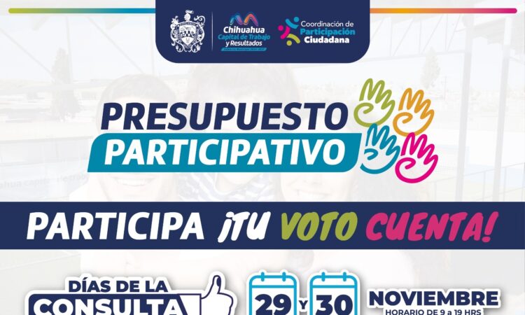 El Gobierno Municipal de Chihuahua invita a todas y todos los chihuahuenses a participar este sábado 29 y domingo 30 de noviembre en la votación del Presupuesto Participativo 2026, donde podrán elegir los proyectos que desean para sus colonias. La ciudadanía podrá emitir su voto directamente en las urnas de su distrito o a través de la aplicación móvil oficial, disponible para dispositivos Android.