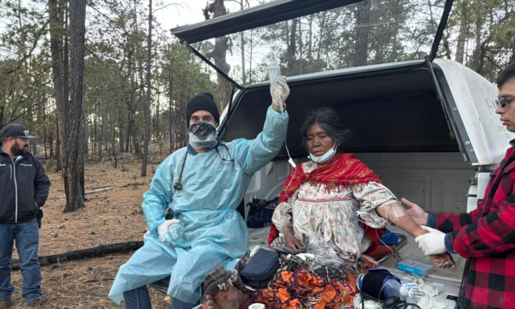 En Curémachi con una brigada especializada se proporcionó asistencia a casos de personas con enfermedades respiratorias. Tras la revisión y diagnóstico correspondiente, médicos, camilleros y personal de la SPyCI trasladaron a un hospital, a una paciente adulta mayor, cuyo estado de salud se reporta estable.