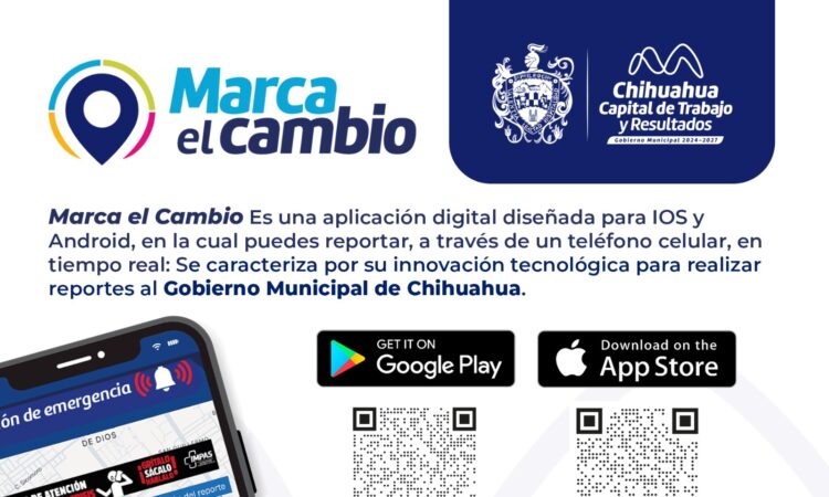 Mediante la aplicación Marca el Cambio, puedes reportar diversas situaciones de la ciudad para ayudar a construir un Chihuahua más limpio, seguro, iluminado y ordenado.