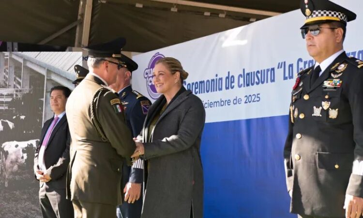 La gobernadora Maru Campos acompañó a las autoridades del Ejército Mexicano, en la ceremonia de clausura de la exposición militar “La Gran Fuerza de México” que se llevó a cabo en la ciudad de Chihuahua.