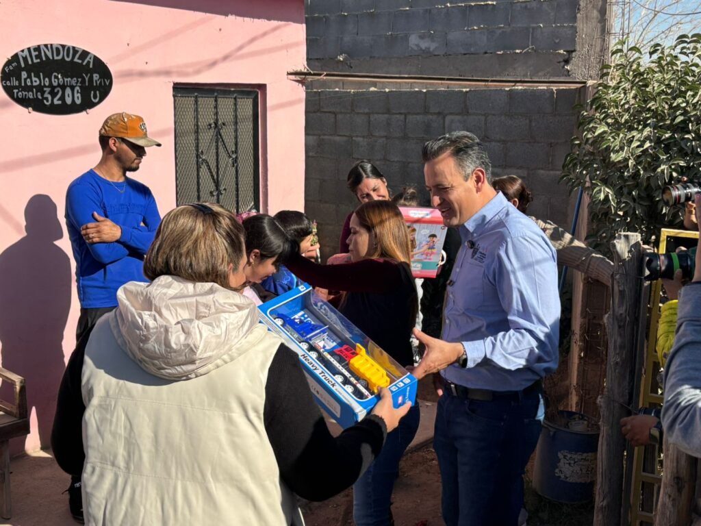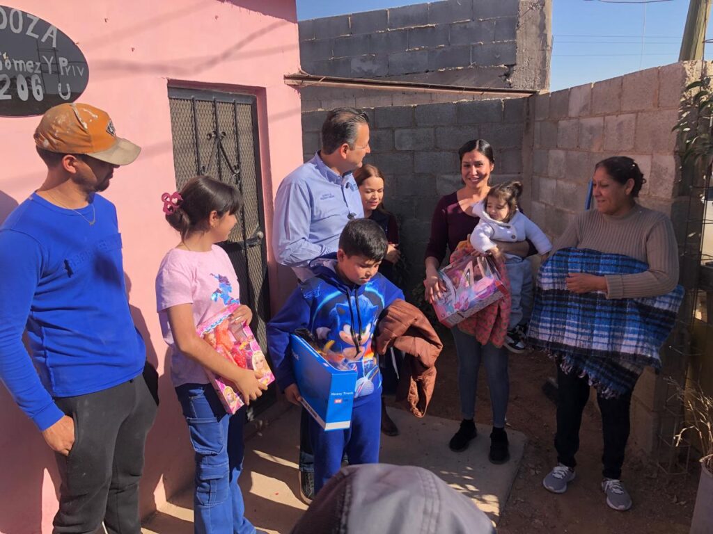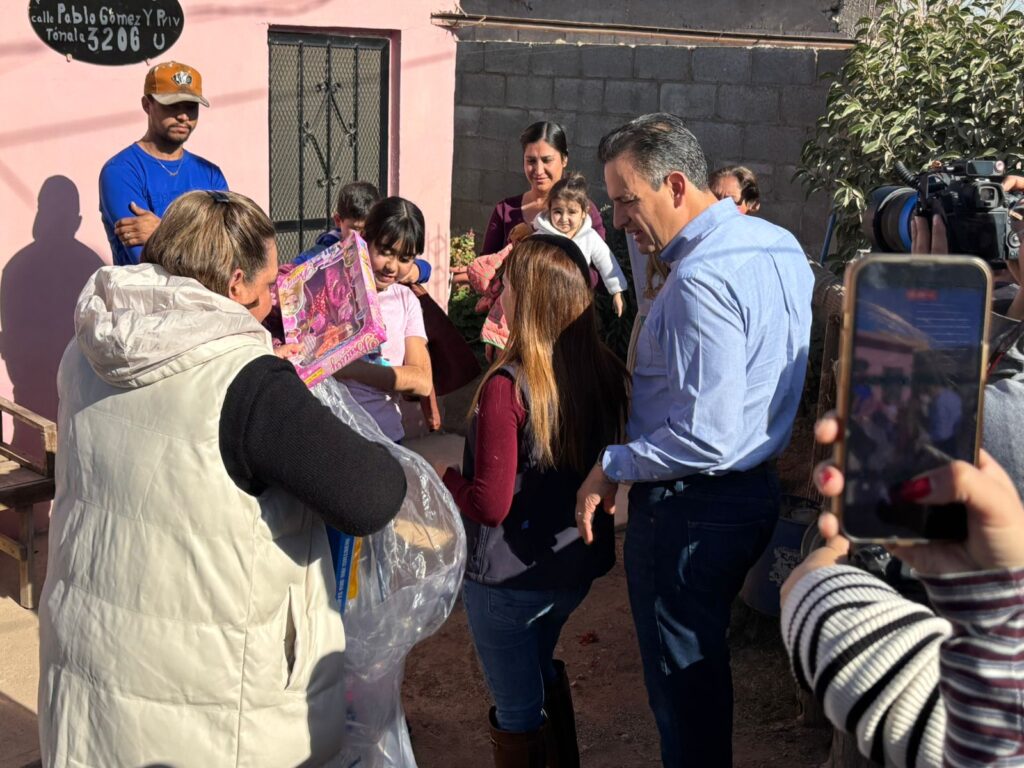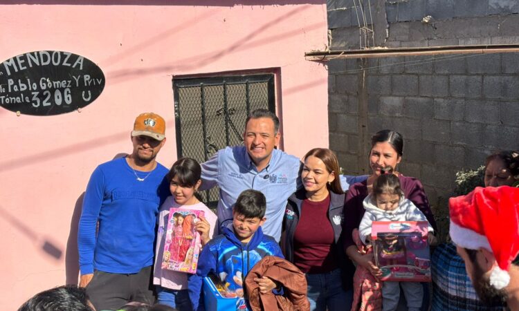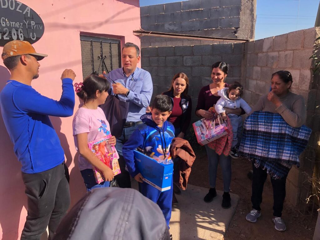 El alcalde Marco Bonilla, acompañado de la presidenta del DIF Municipal, Karina Olivas, realizó la entrega de cenas navideñas a familias de la colonia Crucero, ubicada al sur de la ciudad, como parte de las acciones solidarias emprendidas durante la temporada decembrina.