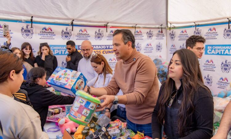 En el marco de la celebración del Día de Reyes, el alcalde Marco Bonilla participó en la entrega de juguetes recolectados durante el tradicional “Juguetón”, iniciativa impulsada por TV Azteca Chihuahua, con el objetivo de llevar alegría, amor y esperanza a niñas y niños de la capital.