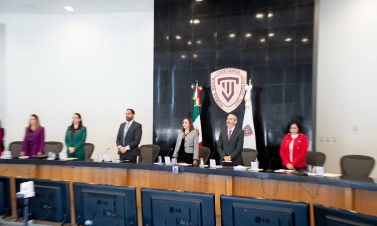 Chihuahua, Chih.- En el marco de la Sesión Extraordinaria Pública celebrada este día en el Salón de Plenos del Centro de Justicia, las magistradas y magistrados integrantes del Pleno del Tribunal Superior de Justicia del Estado rindieron un solemne homenaje al Licenciado Omar Felipe García Cano.