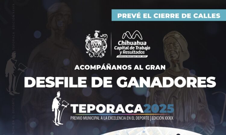 El Gobierno Municipal anuncia el cierre de calles del Centro de la ciudad por el tradicional desfile de los deportistas ganadores del Premio Municipal a la Excelencia en el Deporte, “Teporaca”, este sábado 24 de enero a las 12:00 horas.Lo anterior con el apoyo de la Subdirección de Movilidad de la Secretaria de Seguridad Pública del Estado, a fin de que las familias disfruten de esta fiesta deportiva de la mejor manera.