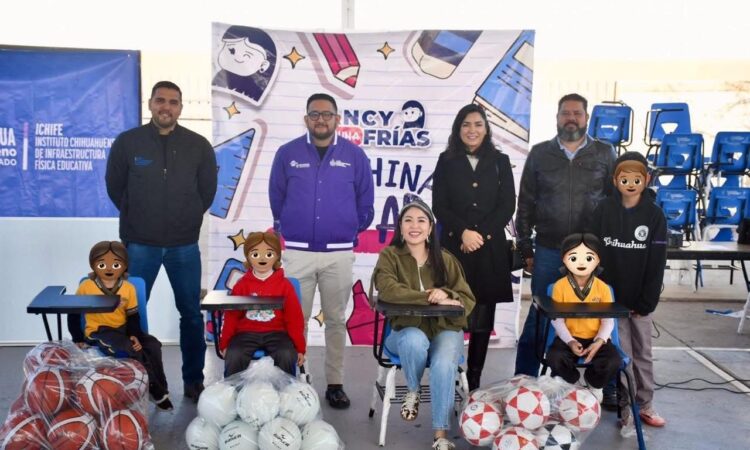 Chihuahua, Chih.– Como parte del compromiso por fortalecer la educación y garantizar espacios seguros para niñas y niños, la diputada local Nancy “La China” Frías, en coordinación con el Gobierno del Estado, llevó a cabo la entrega de equipamiento escolar y la rehabilitación de espacios educativos y deportivos a través del programa “Juntos Construimos”.