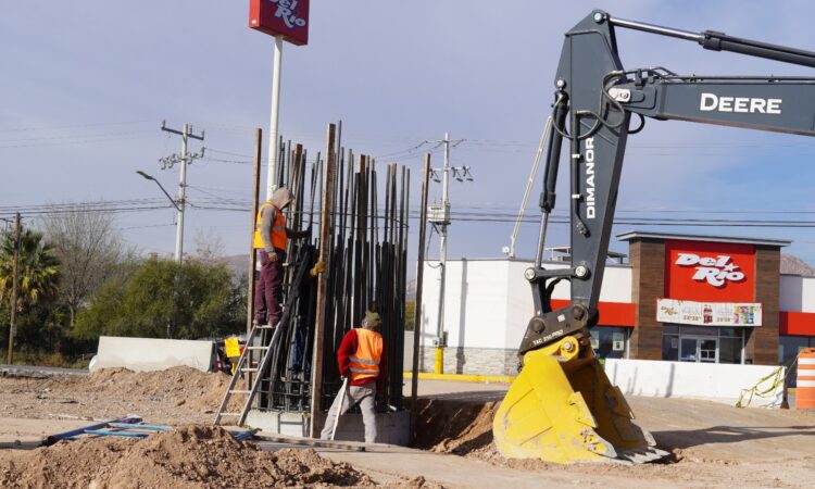 El Gobierno Municipal, a través de la Dirección de Obras Públicas, avanza a buen ritmo en la construcción del Paso Superior de la carretera Chihuahua–Aldama y la avenida Fuerza Aérea, obra que registra un avance global del 20%.