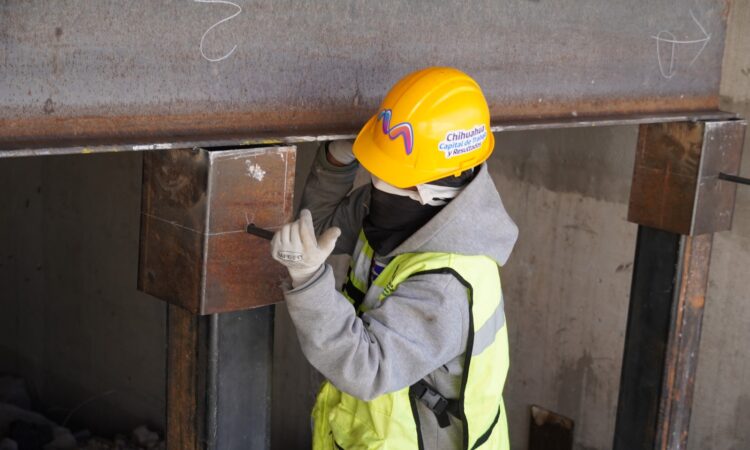 Con el compromiso de habilitar esta importante conexión vial al norte de la ciudad, el Gobierno Municipal, a través de la Dirección de Obras Públicas, desarrolla trabajos de colocación de la estructura de soporte en el puente vehicular y peatonal de la colonia Riberas del Sacramento.