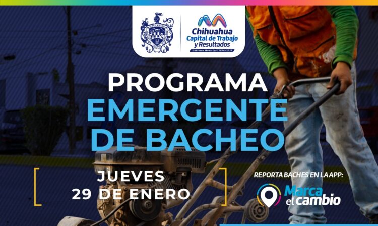 El Gobierno Municipal, a través de la Dirección de Obras Públicas, realizará trabajos de bacheo este jueves 29 de enero mediante el programa emergente en calles de las colonias: Pacífico, Rosario, Tiradores, Ignacio Allende, Insurgentes y Las Granjas.