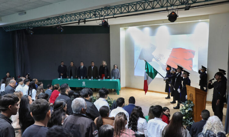 La ceremonia de graduación se realizó en el auditorio del Plantel 8 con la presencia de representantes de las instituciones aliadas, así como madres y padres de familia, quienes acompañaron a los graduandos en este logro académico.