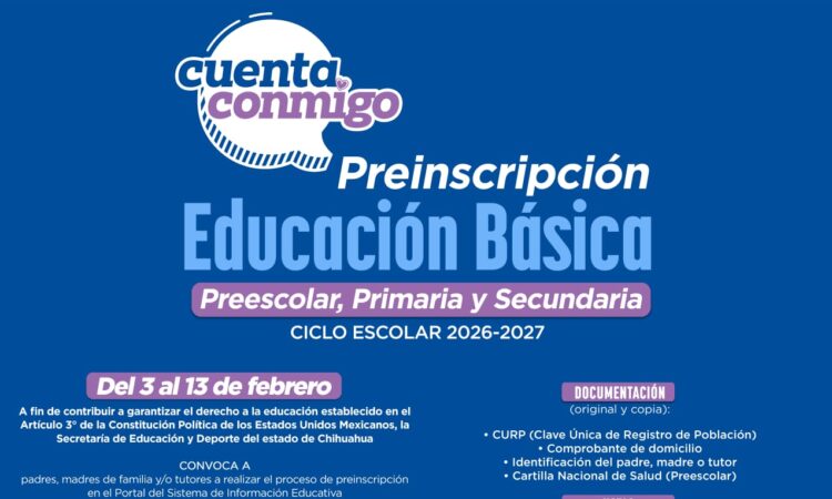El proceso, que comenzó el pasado 3 de febrero y concluye el 13 del mismo mes, se realiza de manera sencilla a través de la plataforma del Sistema de Información Educativa (SIE): sie.chihuahua.gob.mx/publico/, donde se deben seleccionar tres opciones de plantel.