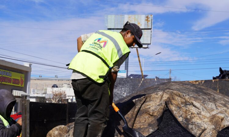 Durante esta semana y debido a las lluvias presentadas en la ciudad durante el pasado lunes y martes, las cuadrillas de bacheo realizaron diversas atenciones provisionales, una vez que el clima lo permitió estuvieron en calles y avenidas principales aplicando mezcla caliente.